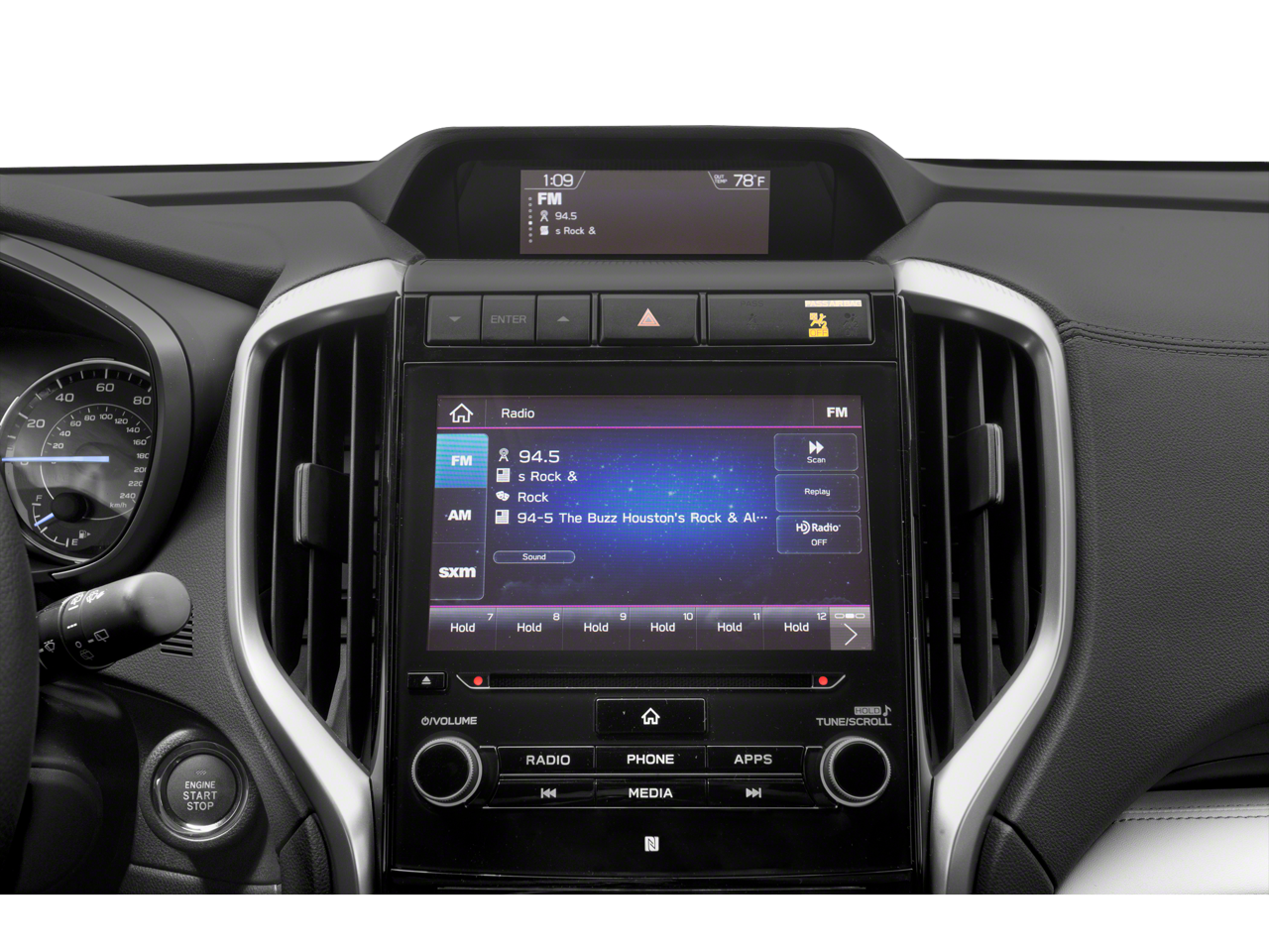 - Radio: Subaru STARLINK 8.0" Multimedia Nav System -inc: AM/FM stereo HD Radio w/single disc CD player, MP3/WMA/CRR/RW file capability, multi touch gesture high resolution LCD display screen, voice activated controls for radio and navigation, Bluetooth® audio streaming connectivity, Bluetooth® hands-free phone connectivity, Bluetooth® hands-free SMS text messaging connectivity (applicable w/compatible cell phone), Near Field Communication (NFC), iPod control capability, SiriusXM All Access radio (subscription required), SiriusXM Traffic (subscription required), SiriusXM Travel Link (subscription required), smartphone integration for Aha, Android Auto, CarPlay and Pandora, STARLINK cloud applications, steering wheel controls for audio and Bluetooth®, harman/kardon quantum logic surround sound speaker system w/14 speakers, subwoofer and harman/kardon 792 watt equivalent maximum output amplifier, 3.5mm auxiliary input jack and front, second and third row dual USB ports